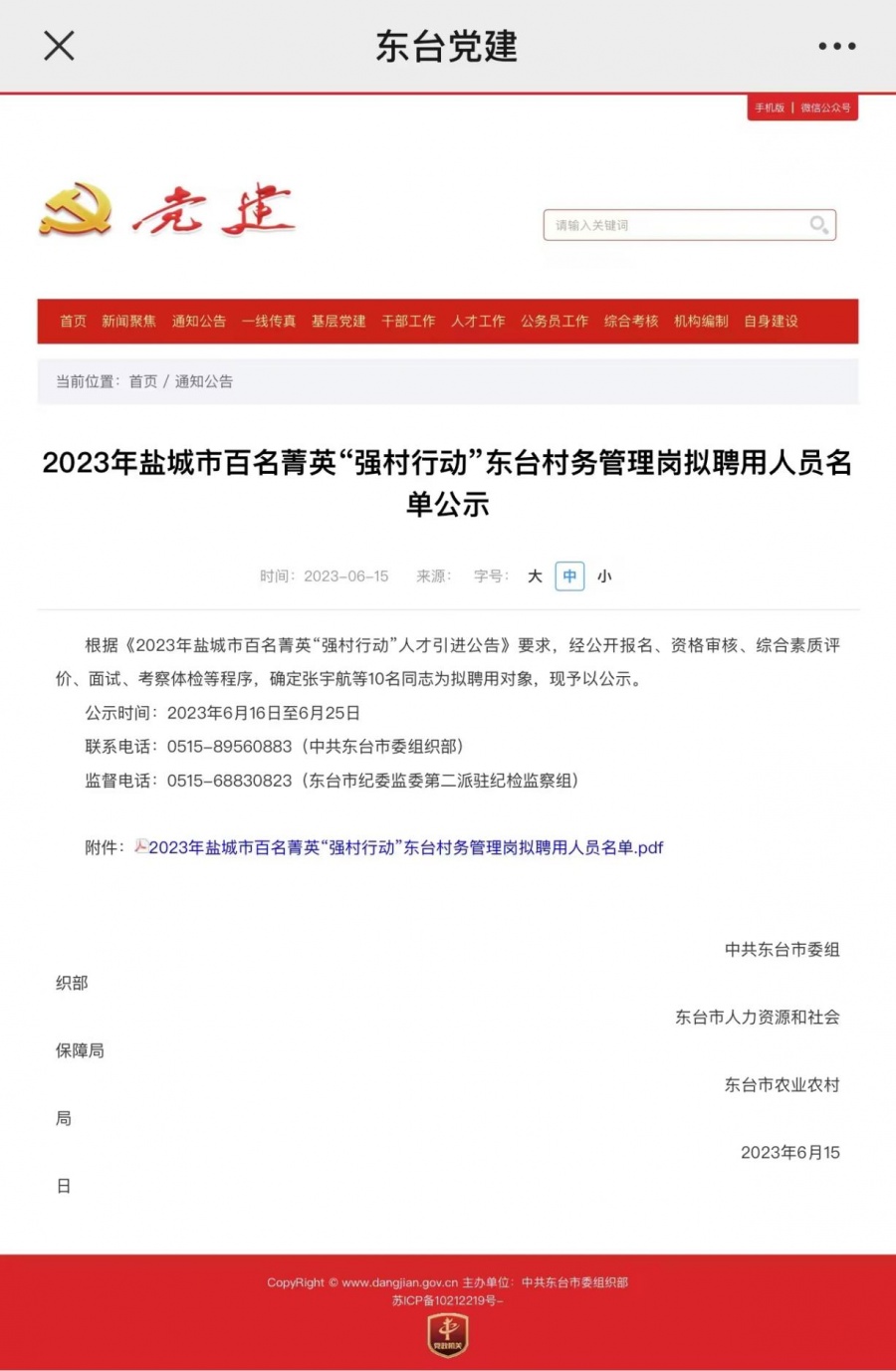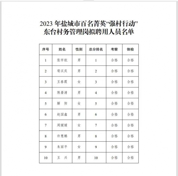日前,從東臺(tái)市委組織部傳來喜訊:鹽城技師學(xué)院2023屆畢業(yè)生張宇航、荀漢慶,在2023年鹽城市百名菁英“強(qiáng)村行動(dòng)”人才引進(jìn)工作中,分別名列東臺(tái)村務(wù)管理工作崗第一、第二名。本次“強(qiáng)村行動(dòng)”人才引進(jìn)工作中,包括省內(nèi)6所本科院校畢業(yè)生在內(nèi)349人參加崗位競(jìng)爭(zhēng),經(jīng)綜合素質(zhì)評(píng)價(jià)、面試、考察等層層遴選,張宇航、荀漢慶以明顯的優(yōu)勢(shì)脫穎而出。