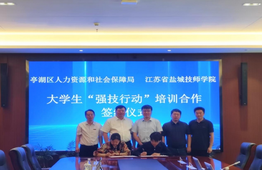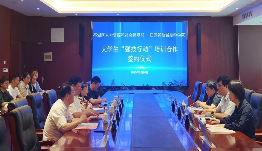 5月30日上午,鹽城技師學(xué)院與亭湖區(qū)人力資源和社會(huì)保障局在海洋路校區(qū)16樓會(huì)議室舉行大學(xué)生“強(qiáng)技行動(dòng)”培訓(xùn)合作簽約儀式。亭湖區(qū)人力資源和社會(huì)保障局局長(zhǎng)、黨委書(shū)記朱東升,副局長(zhǎng)邱靜,鹽城技師學(xué)院副校長(zhǎng)唐監(jiān)懷出席,亭湖區(qū)人力資源和社會(huì)保障局以及學(xué)校培訓(xùn)處、信息工程學(xué)院相關(guān)負(fù)責(zé)人參加。簽約儀式由信息工程學(xué)院院長(zhǎng)陳月東主持。